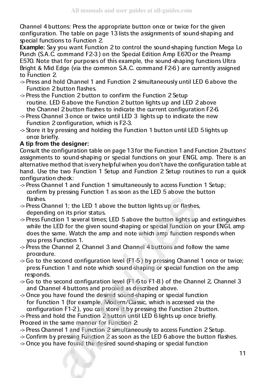 press and note which sound-shaping or special function on the amp