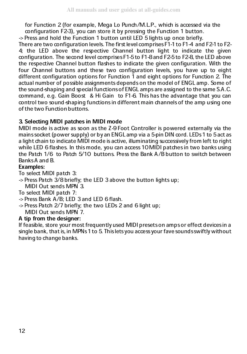 while LED 6 flashes. In this mode, you can access 10 MIDI patches in two banks using