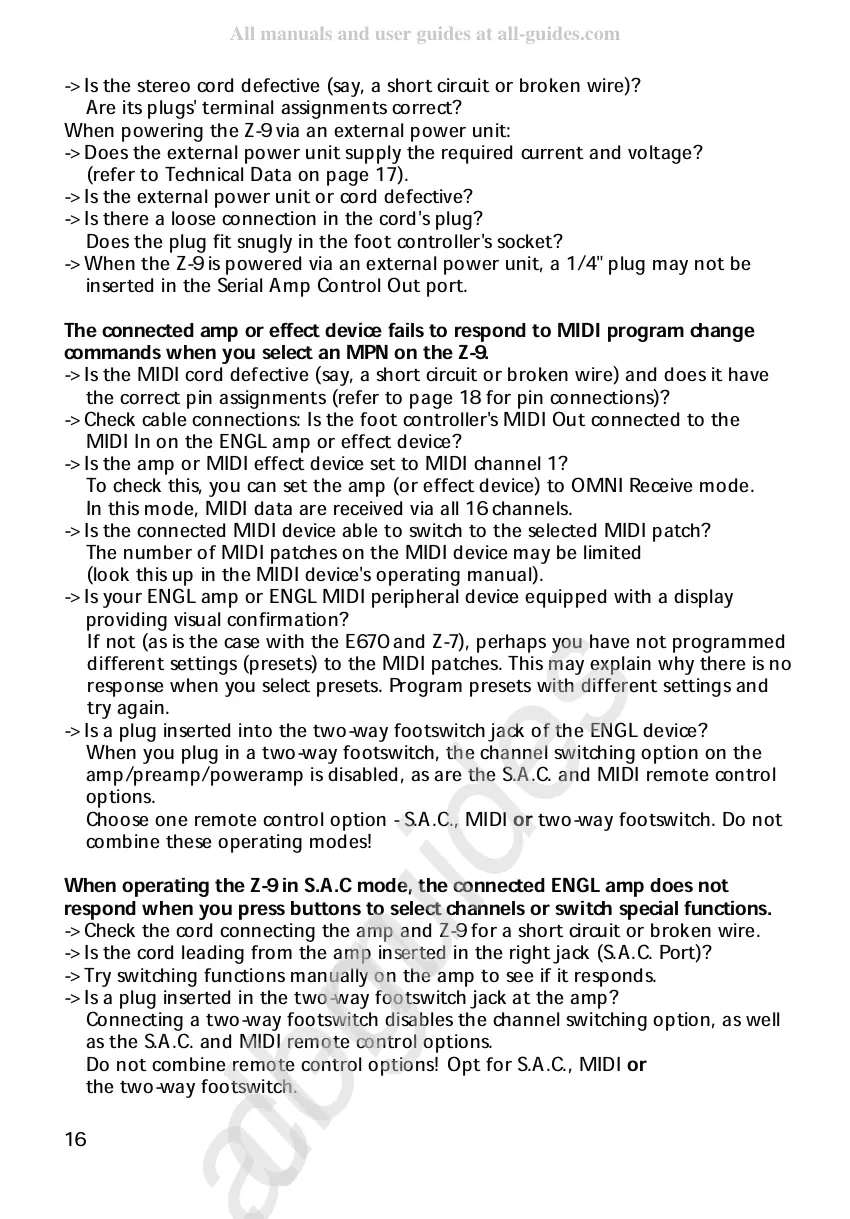 When operating the Z-9 in S.A.C mode, the connected ENGL amp does not