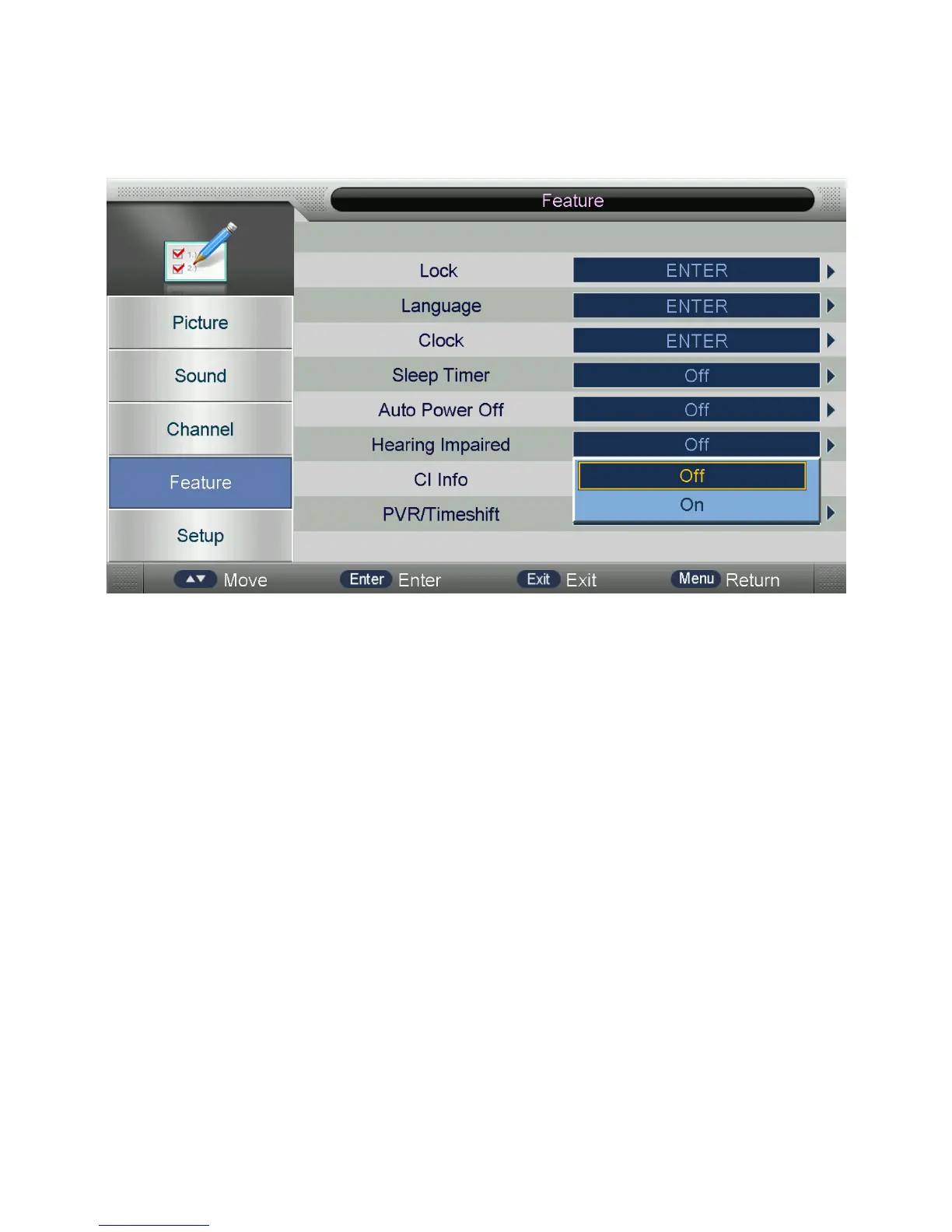 Englaon 24M80 - Hearing Impaired Features; CI Info; PVR and Timeshift