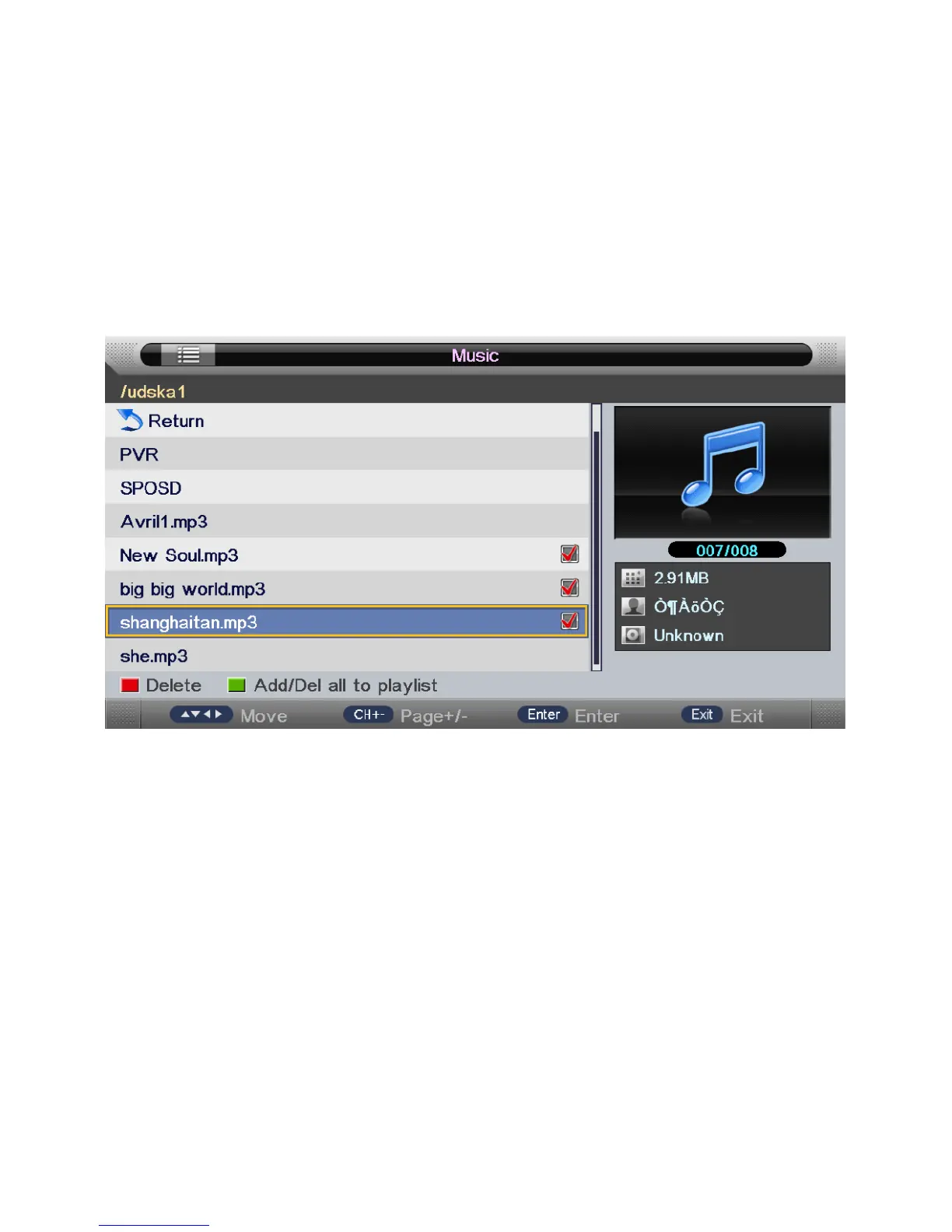 key, then press “ENTER” key enter music page, as follow: