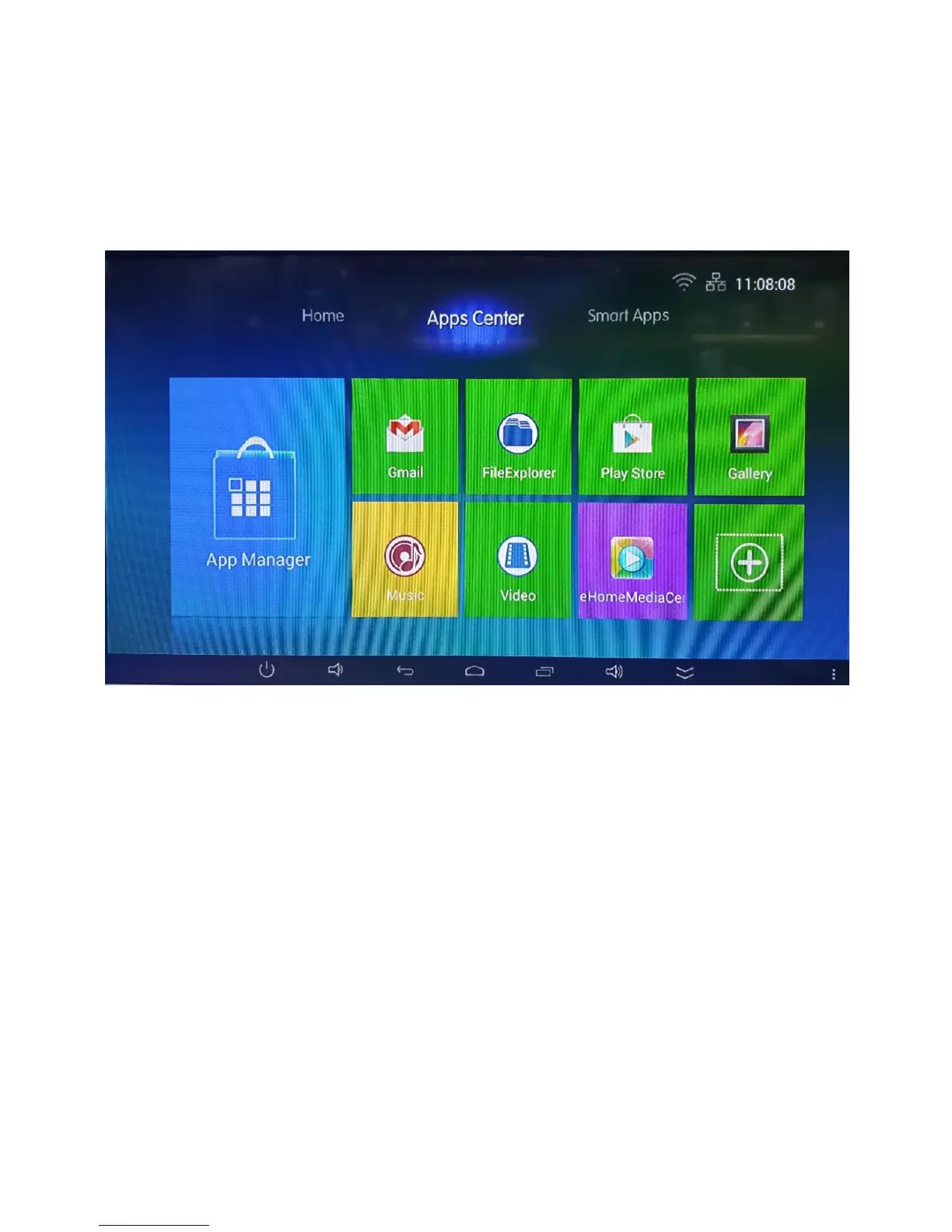 In the center of the application, you can pass the Gallery, Music, Video read USB storage