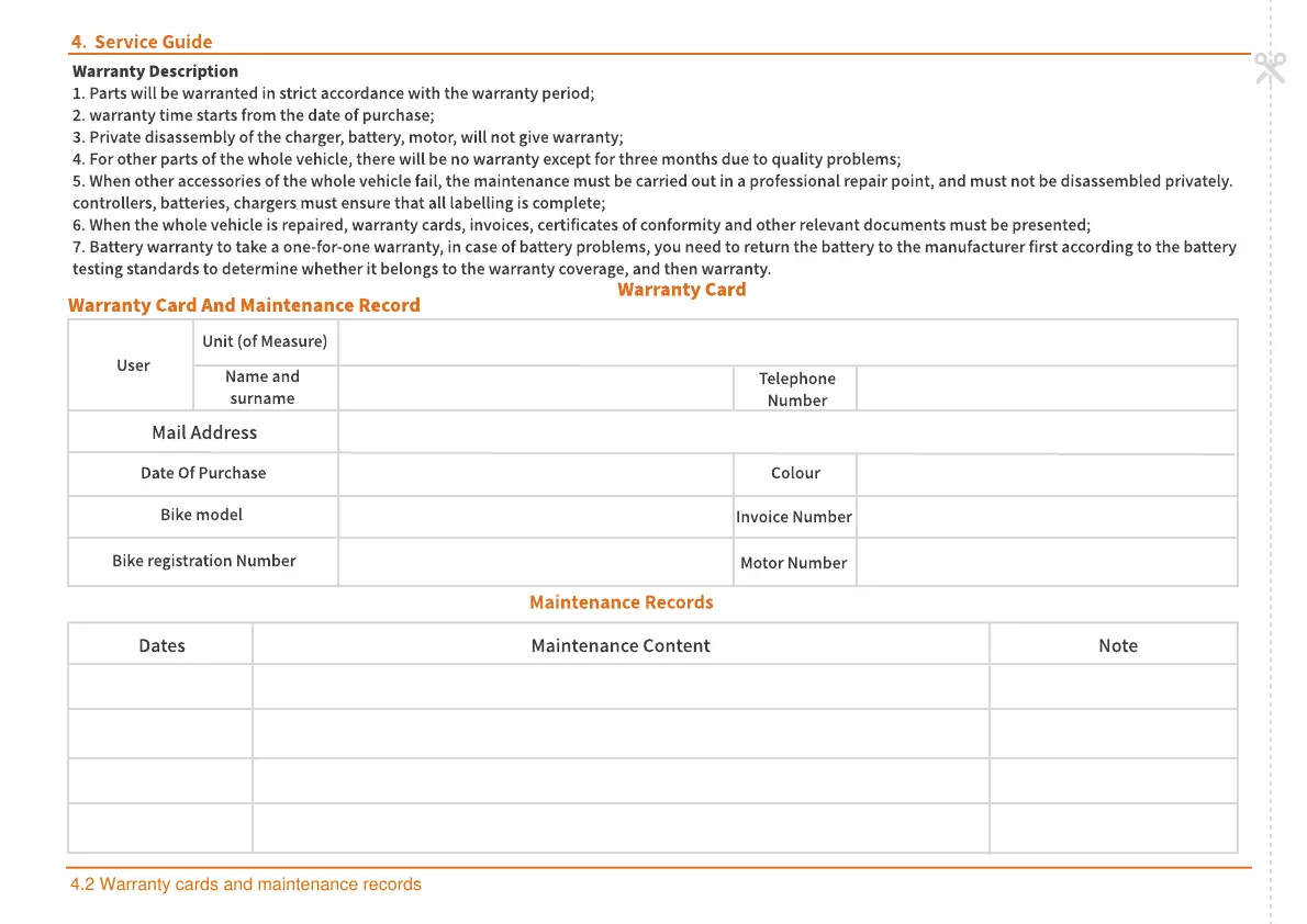 4. For other parts of the whole vehicle, there will be no warranty except for three months due to quality problems;