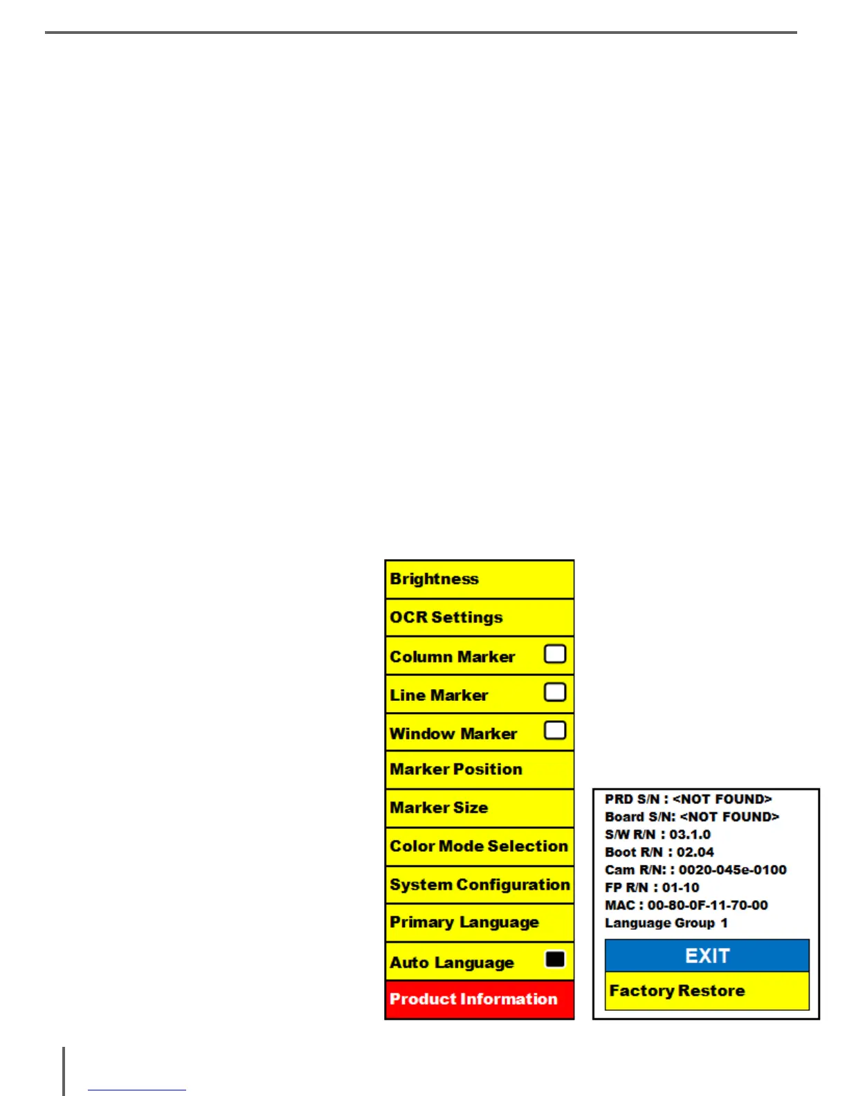 3. Press the “Find” button to display the “Product Information” sub menu.