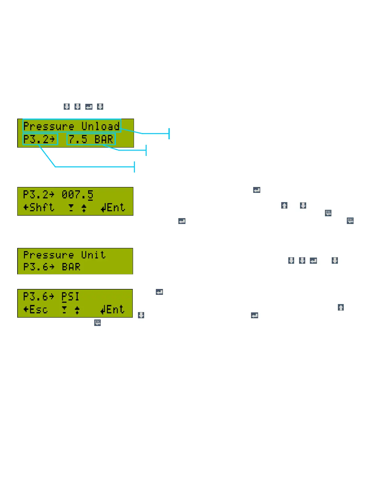 3.e.2 Pressure Unload (P3.2) (Bar/PSI):