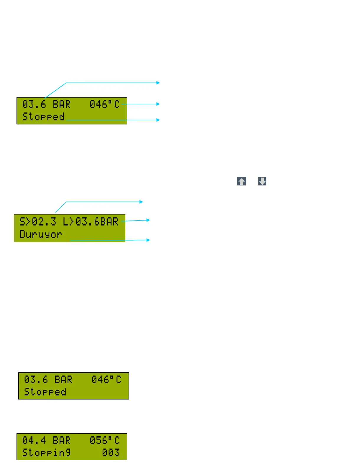 The operator may cycle between the 2 pages in the Main Operating Screen using the and buttons.