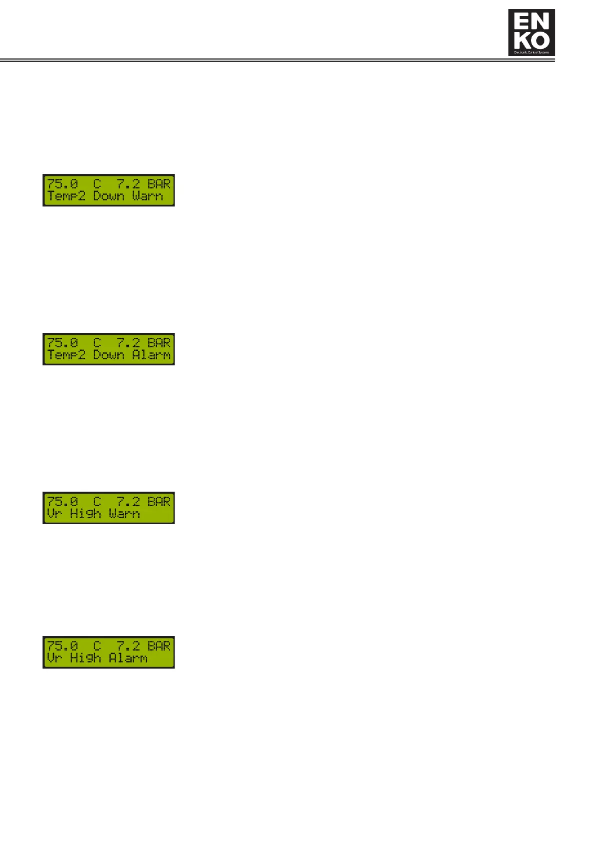 are defined as AN4, is lower than the value entered to the "P136 Temperature 2 Low Alarm" parameter. It is a