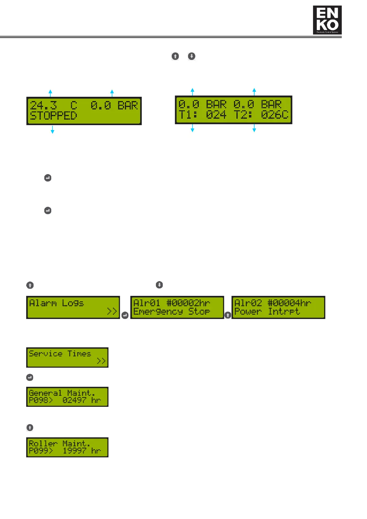 When button is pressed in the Service Times menu, the following screens are accessed.