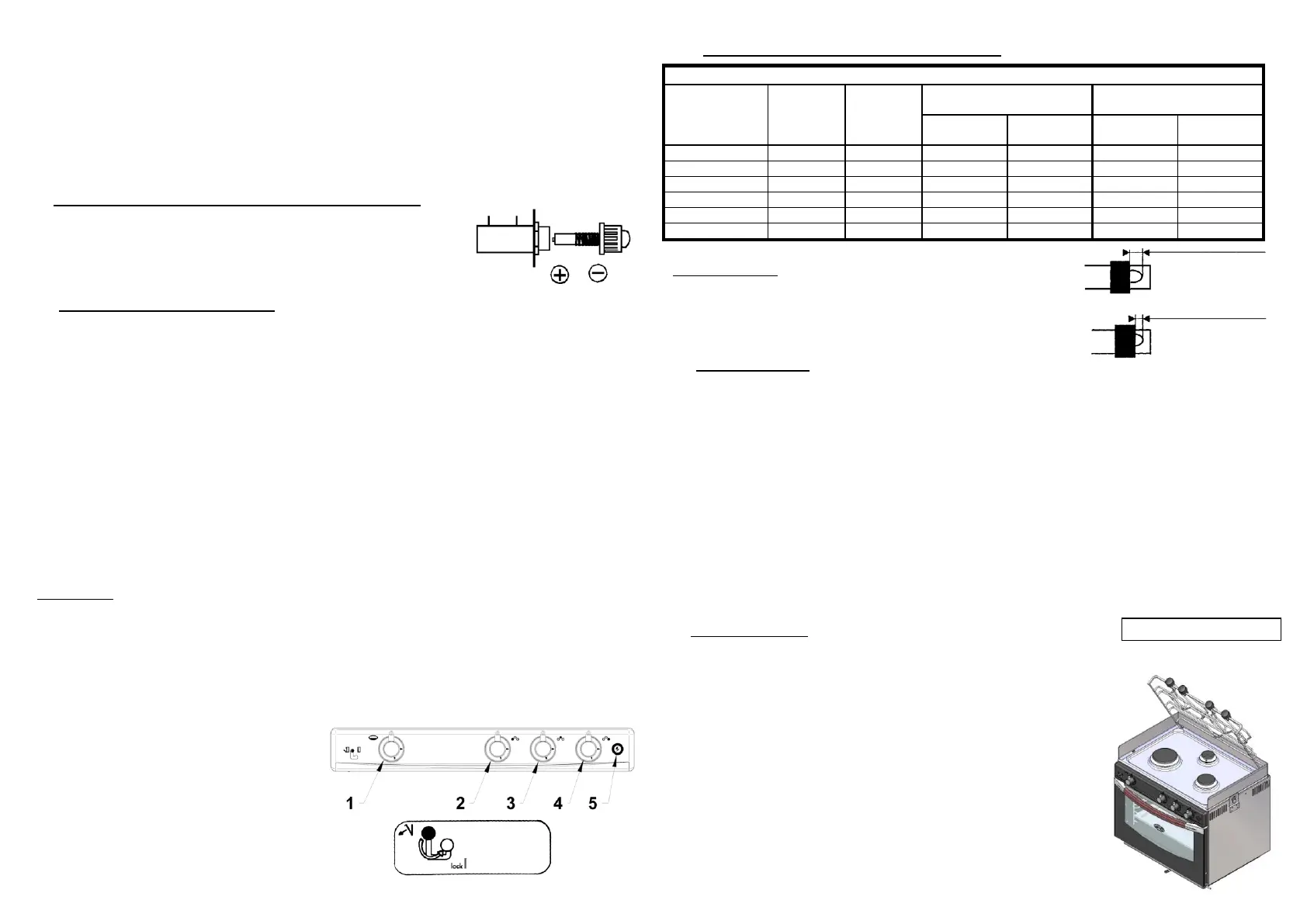 Il forno è comandato da una valvola di sicurezza che interrompe l'alimentazione del gas in caso di spegnimento