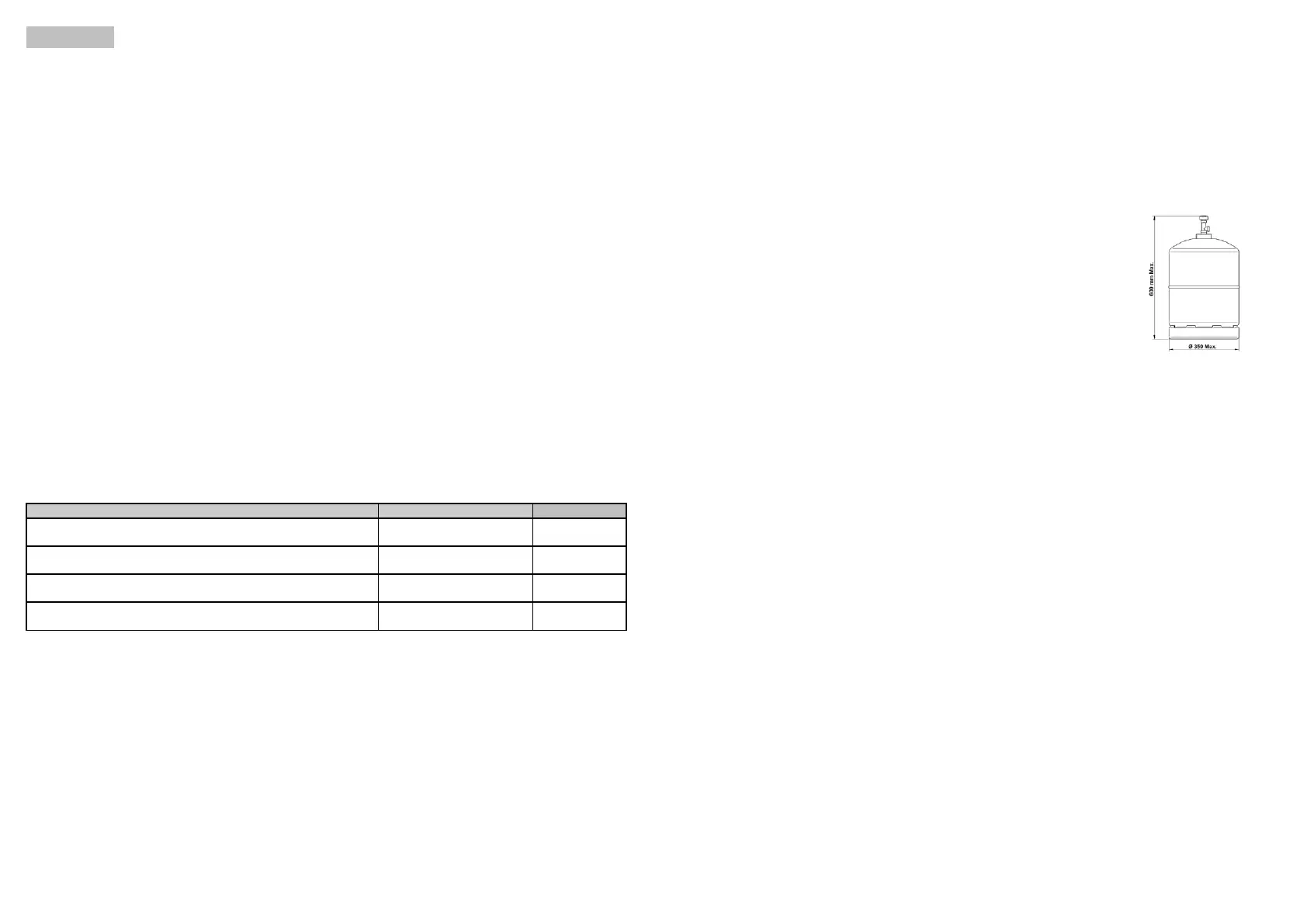 - Per le bombole di GPL da 6 Kg o 15 Kg raccomandiano l’uso del regolatore di pressione