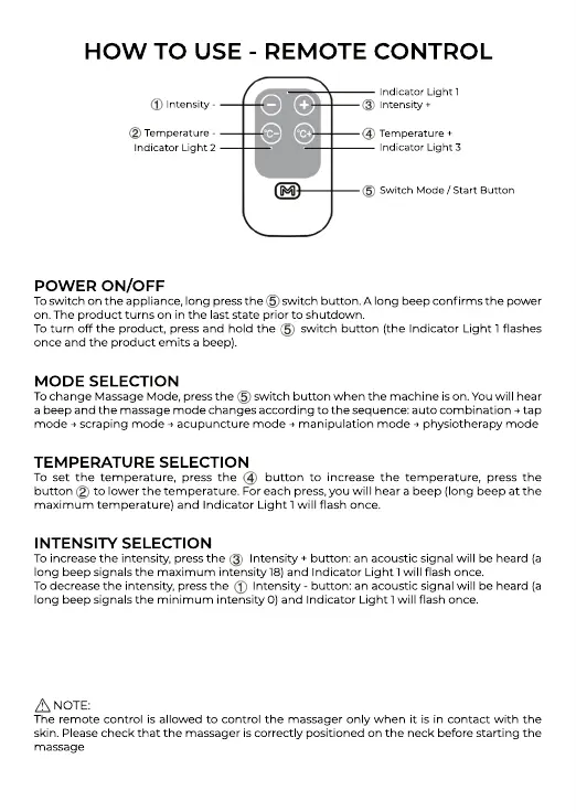 skin. Please check that the massager is correctly positioned on the neck before starting the