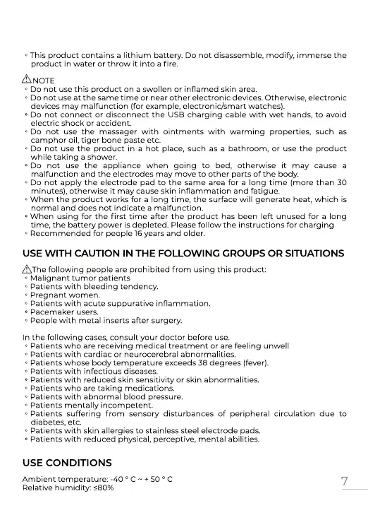 ◦Do not apply the electrode pad to the same area for a long time (more than 30