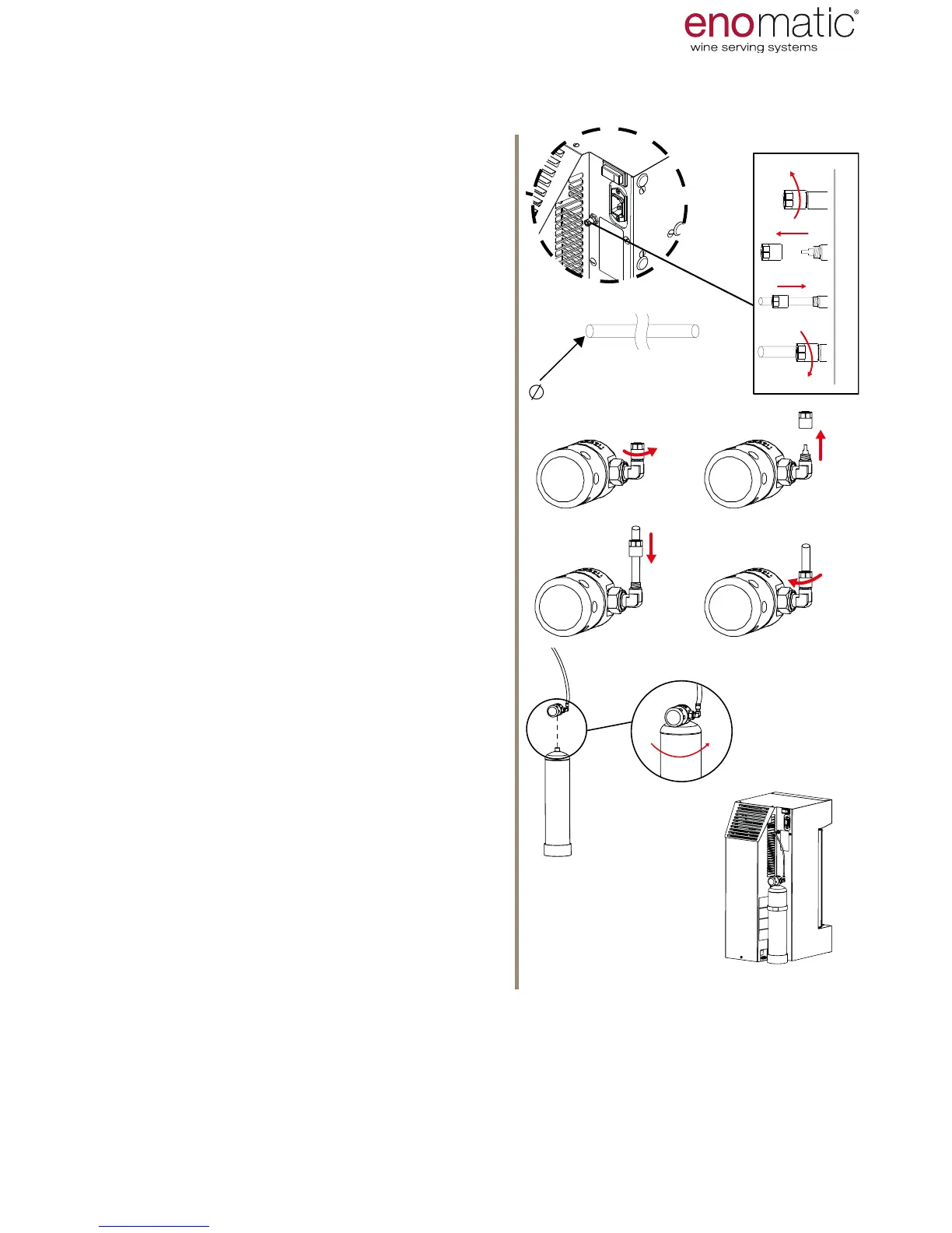 Should it be necessary to disconnect the Dispenser from the gas supply, never