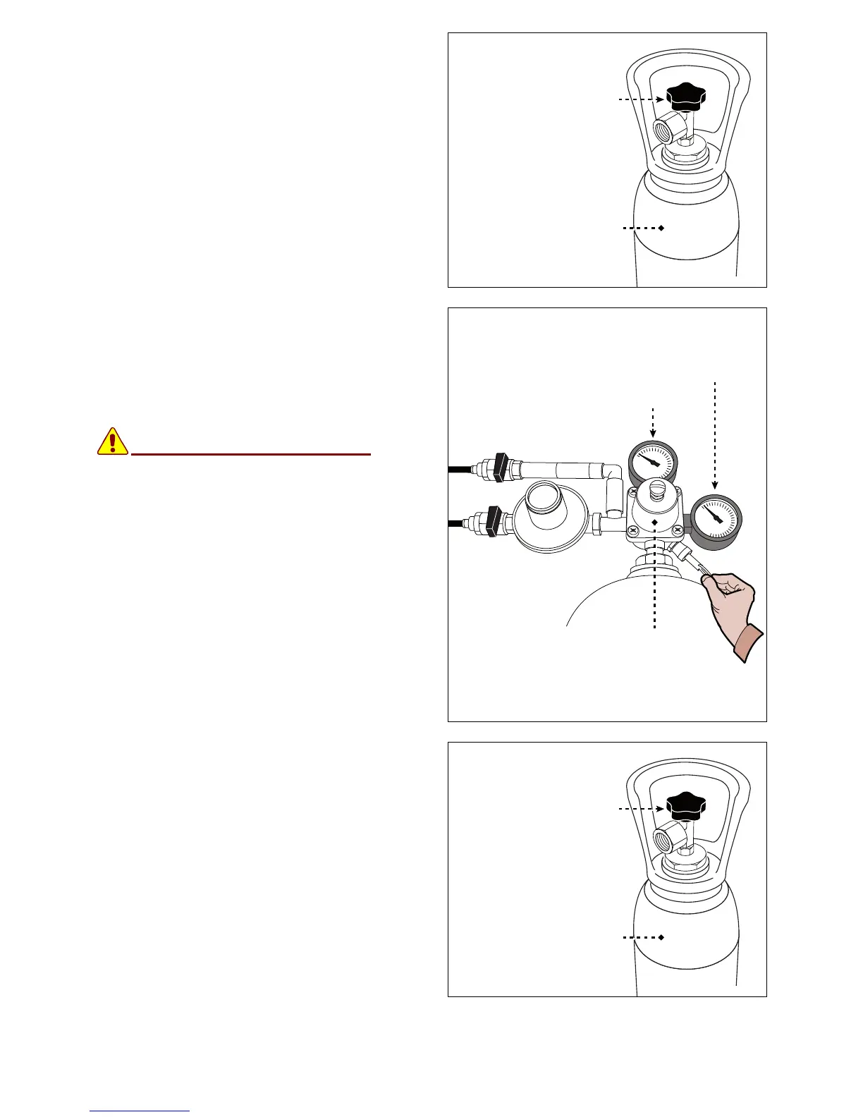 9. Open the handle (J) of the tank (K).