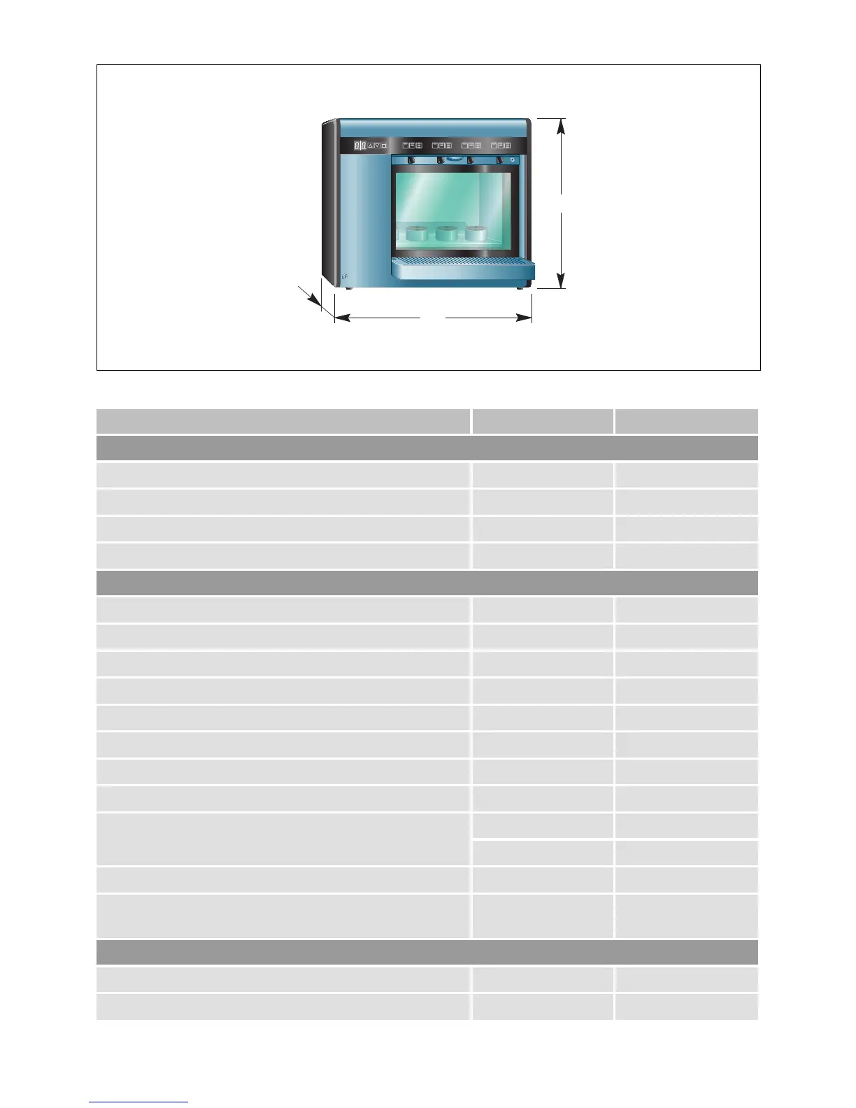 Chart 1: Dispenser technical data