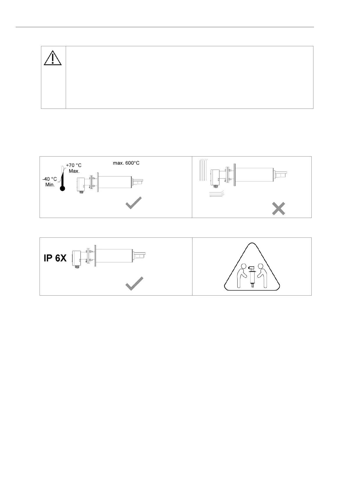 Leave enough space for insertion/removal of the probe and protection tube (if supplied) and ensure access to the