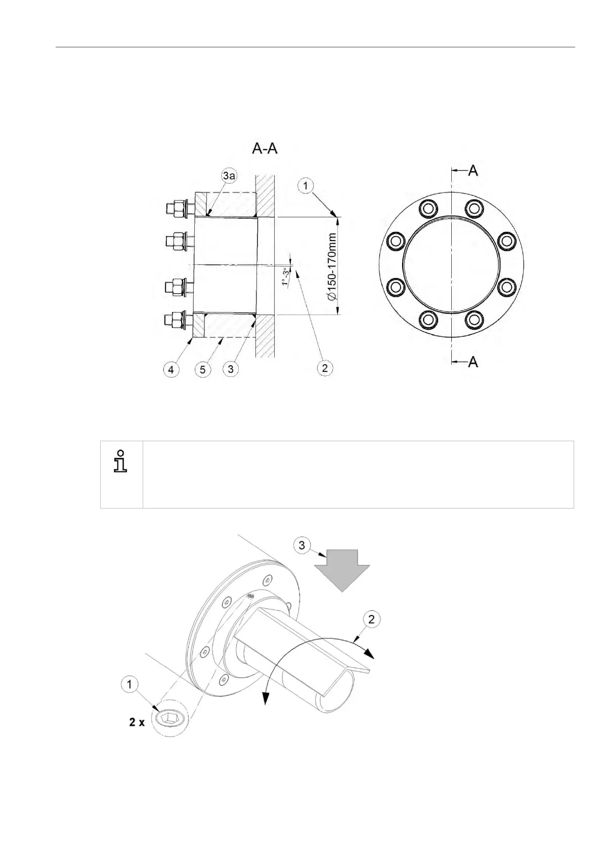 The flange has to be mounted at an angle of 1-3° (2) so that condensed flue gas elements can flow back into