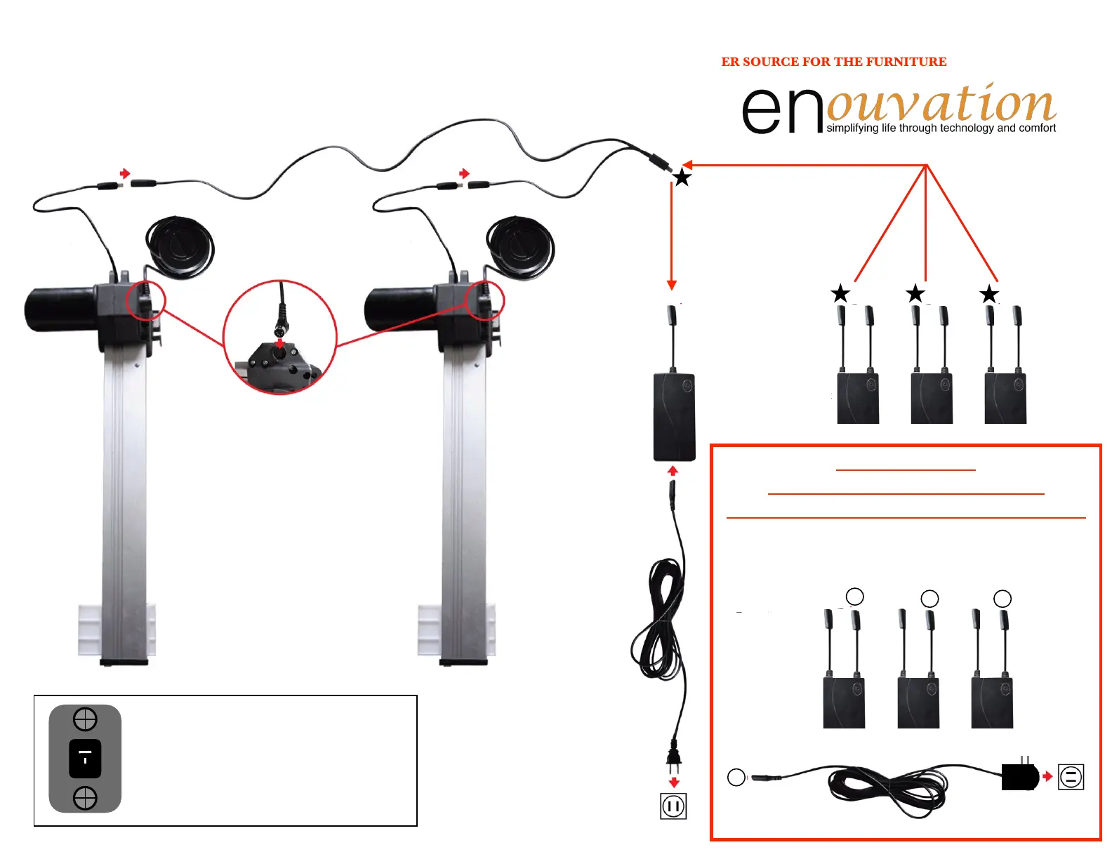 NEVER CONNECT CHARGER TO POWER PACK WHEN CONNECTED TO FURNITURE. POWER PACK MUST BE DISCONNECTED FROM FURNITURE TO RECHARGE