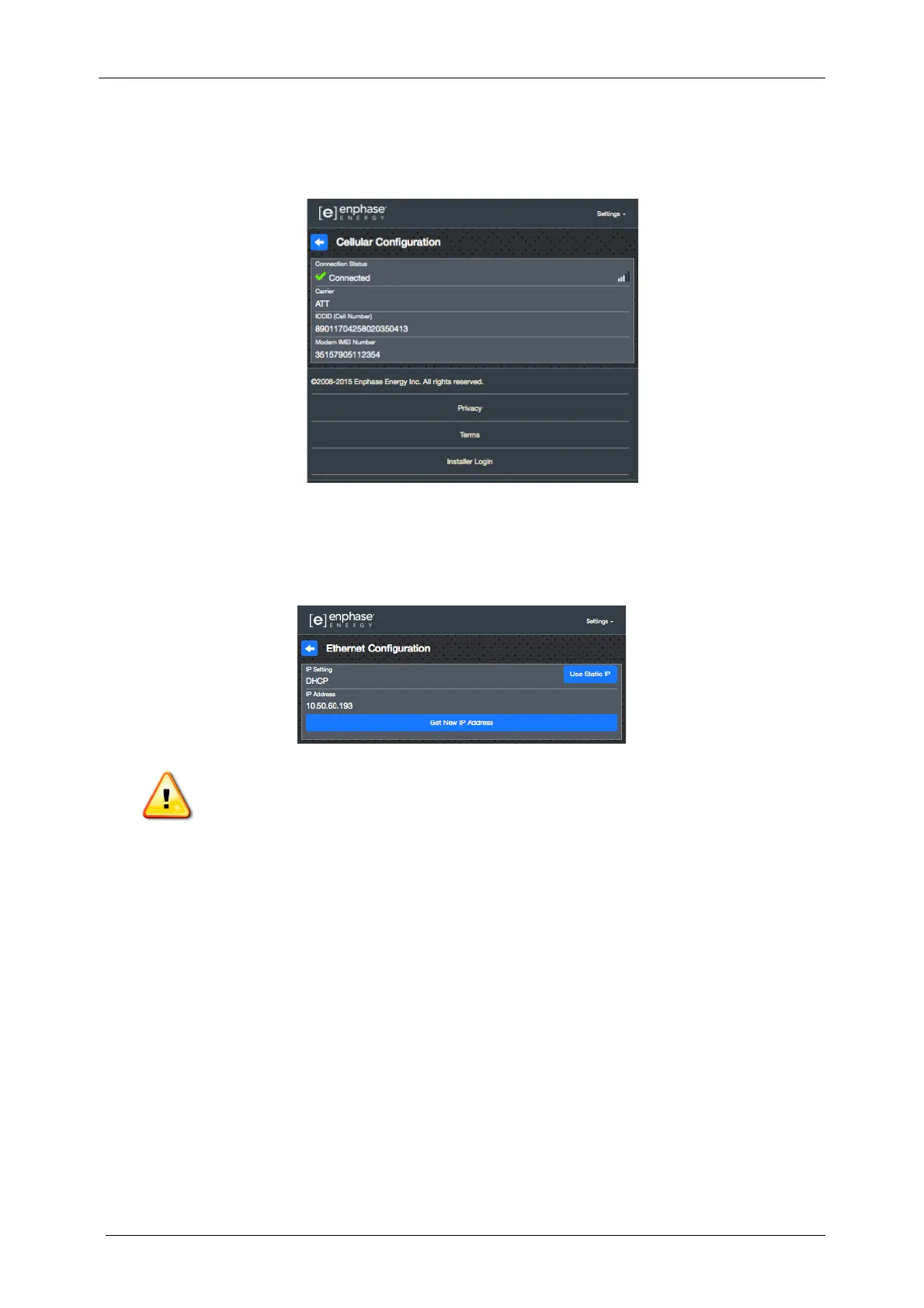 When the IQ Gateway is using Ethernet to connect with Enphase Installer App, select > to view