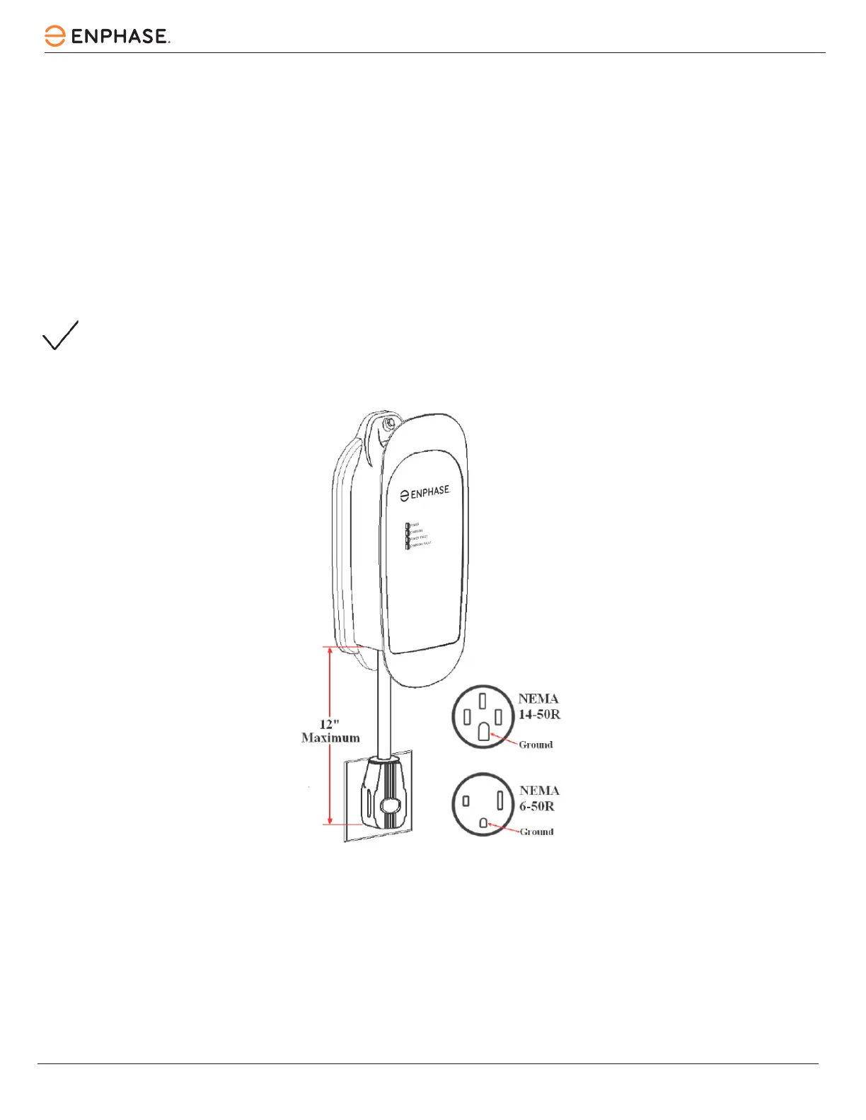 NOTE : Les EVSE de type che doivent être installés avec la prise 14-50R ou 6-50R fournie si elle est fournie avec