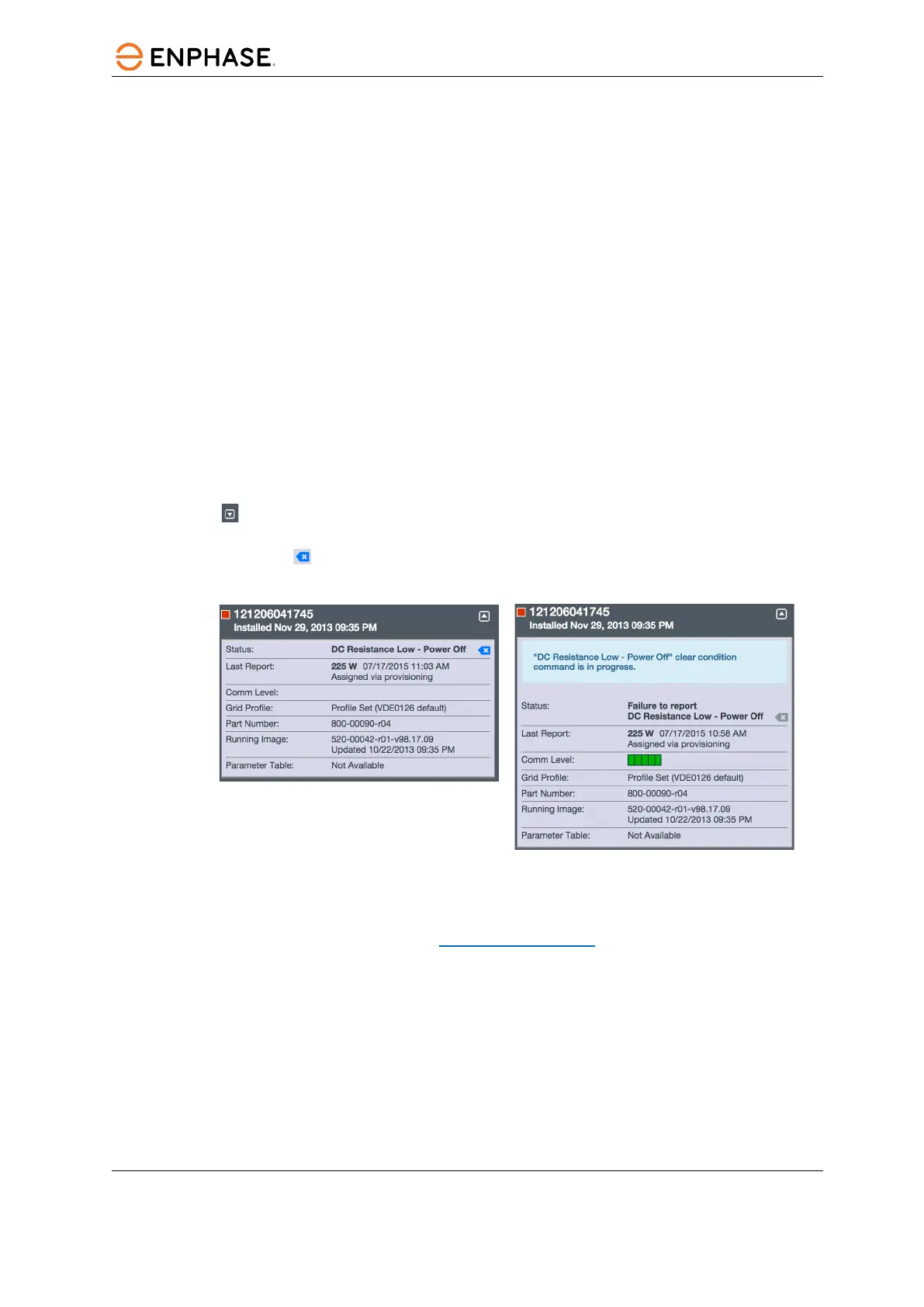 • If the microinverter status shows that there is an active DC Resistance Low – Power Off