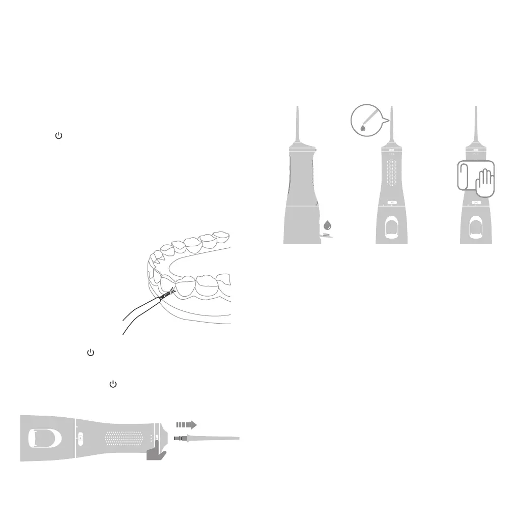 con la punta dell'ugello rivolta verso i denti. Tenere la bocca