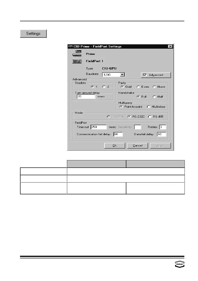 enraf Ensite Pro - Configure CIU Prime - FieldPort Settings; FieldPort Communication Parameters (CIU-GPU;BPM-GPU)