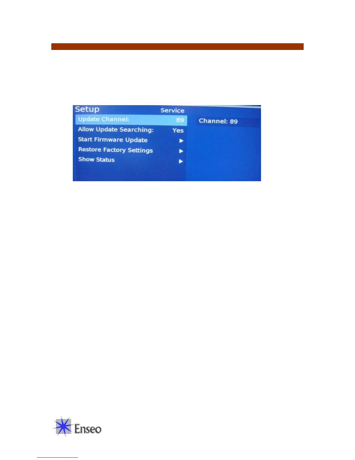 This feature is used for setting a channel to perform firmware updates. Using the numeric