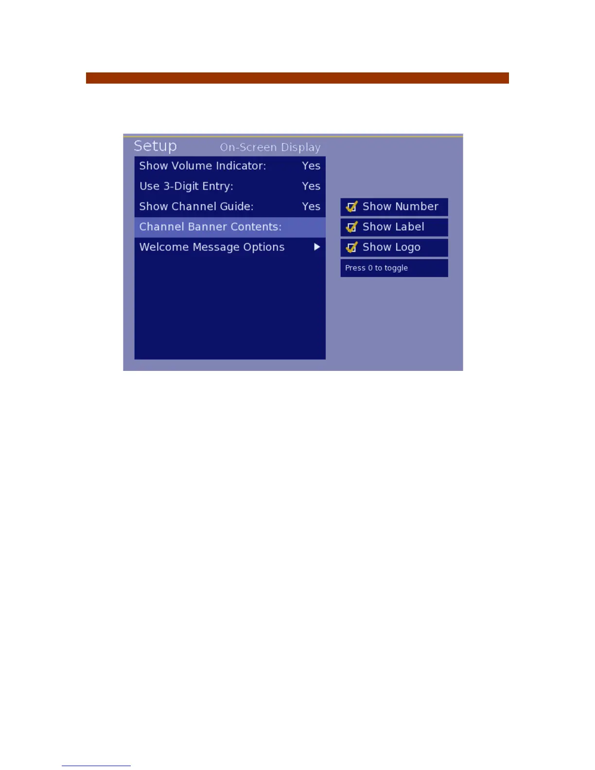 The On-Screen Display Options settings provide for customization and set up of OSD options.