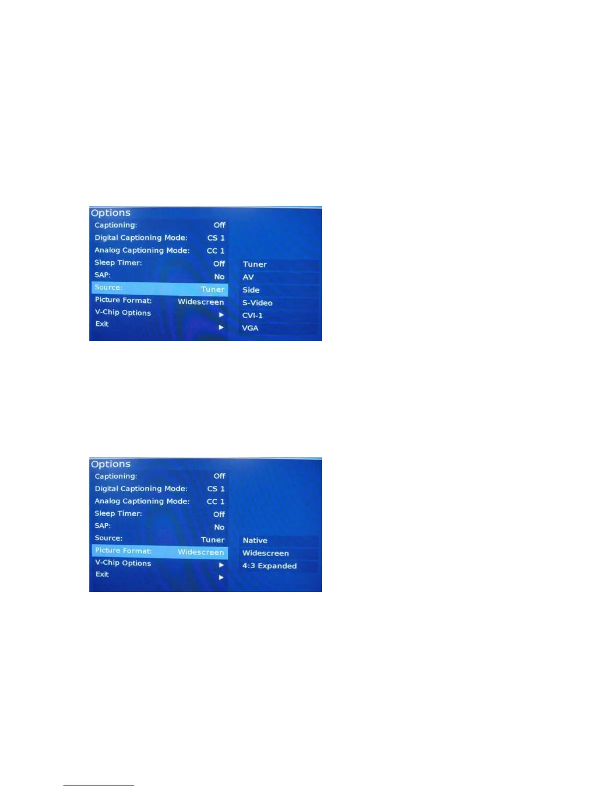 Note: On Plasma monitors, user access to Picture Format will be limited to prevent the potential
