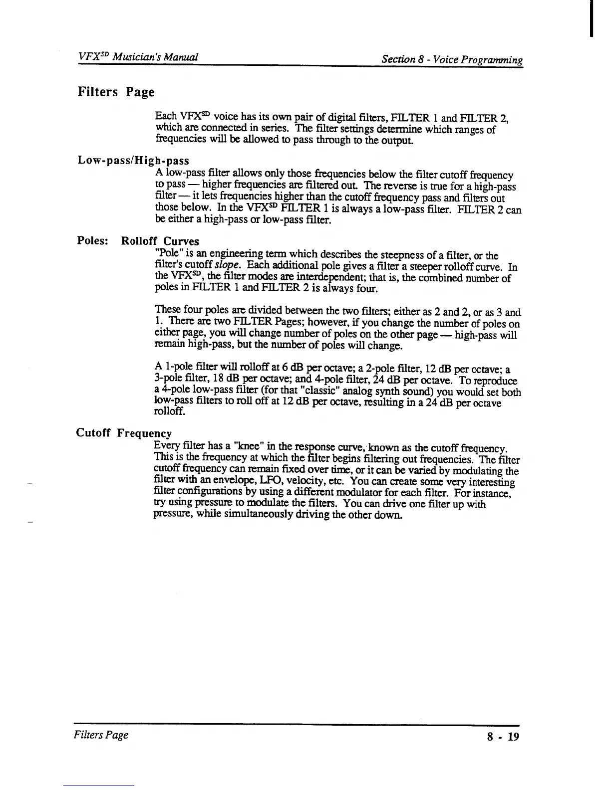 ENSONIQ VFX SD - Filters Page