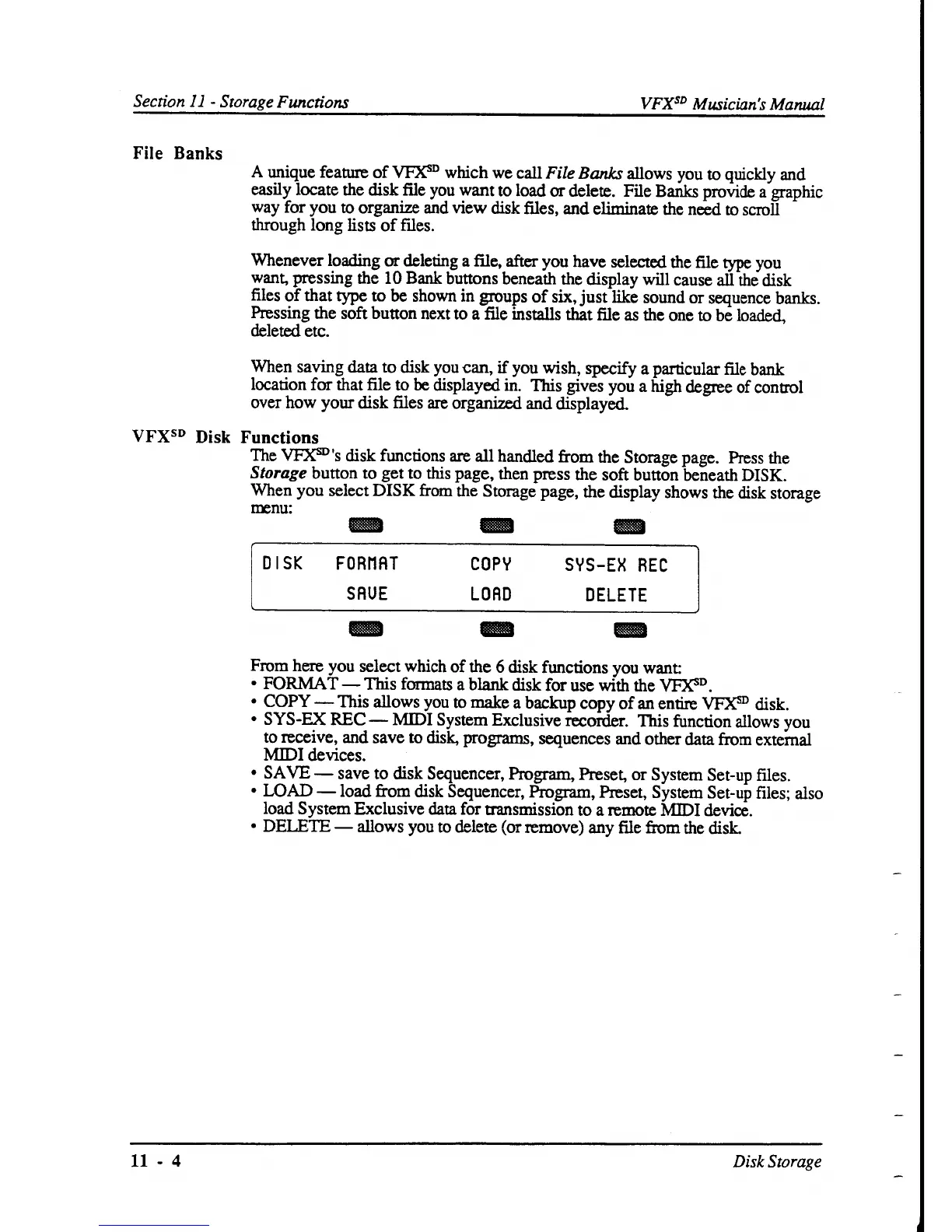 ENSONIQ VFX SD - VFX SD Disk Functions