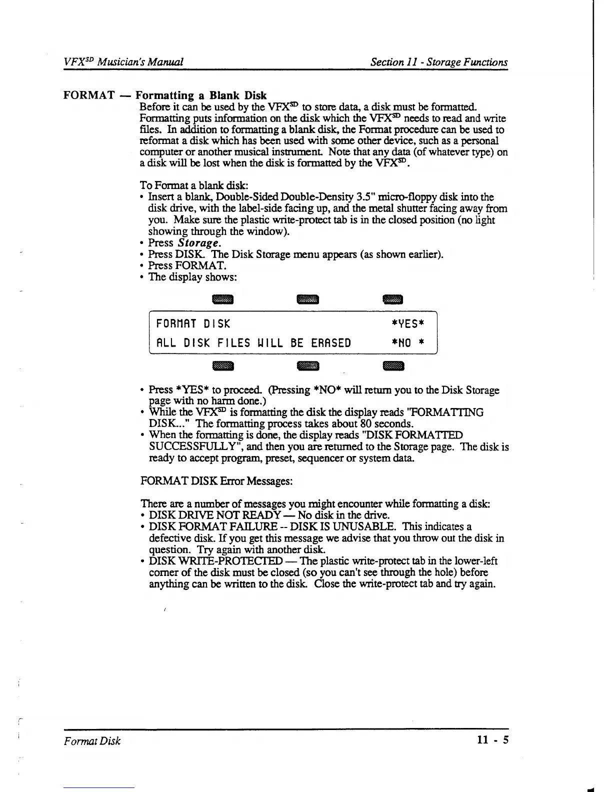 ENSONIQ VFX SD - Formatting a Blank Disk