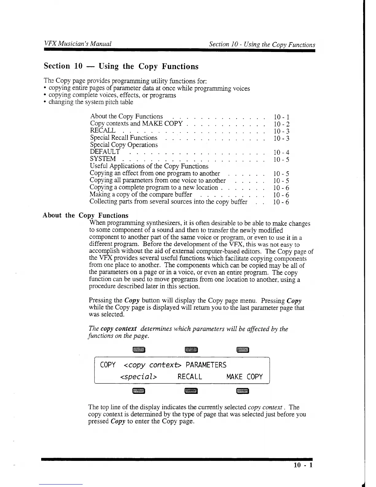 ENSONIQ VFX - Using the Copy Functions; Copy and Recall Operations
