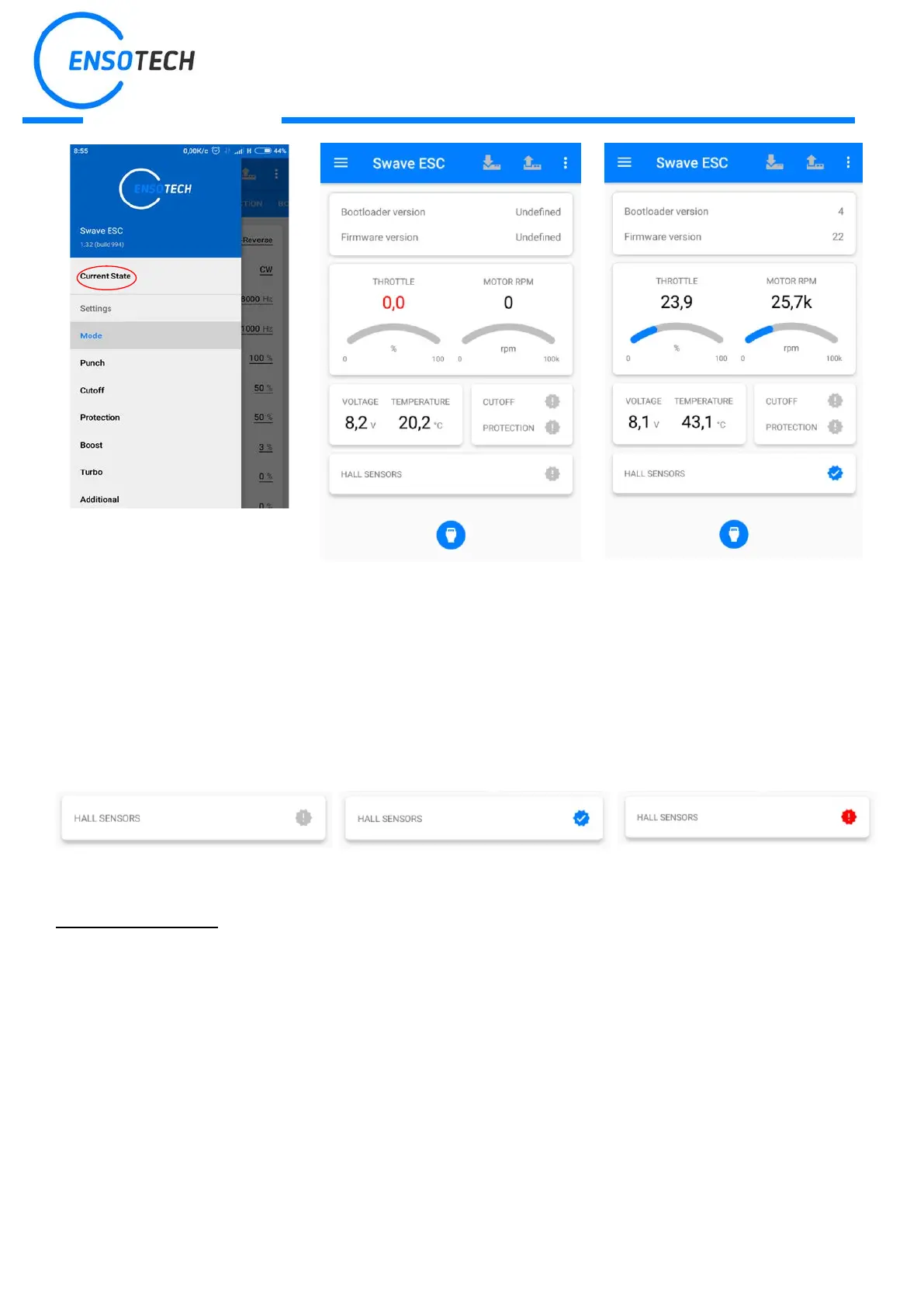 Swave E ESC has sensors recognition system. So, if you connect sensor cable to ESC the hall sensors icon will still