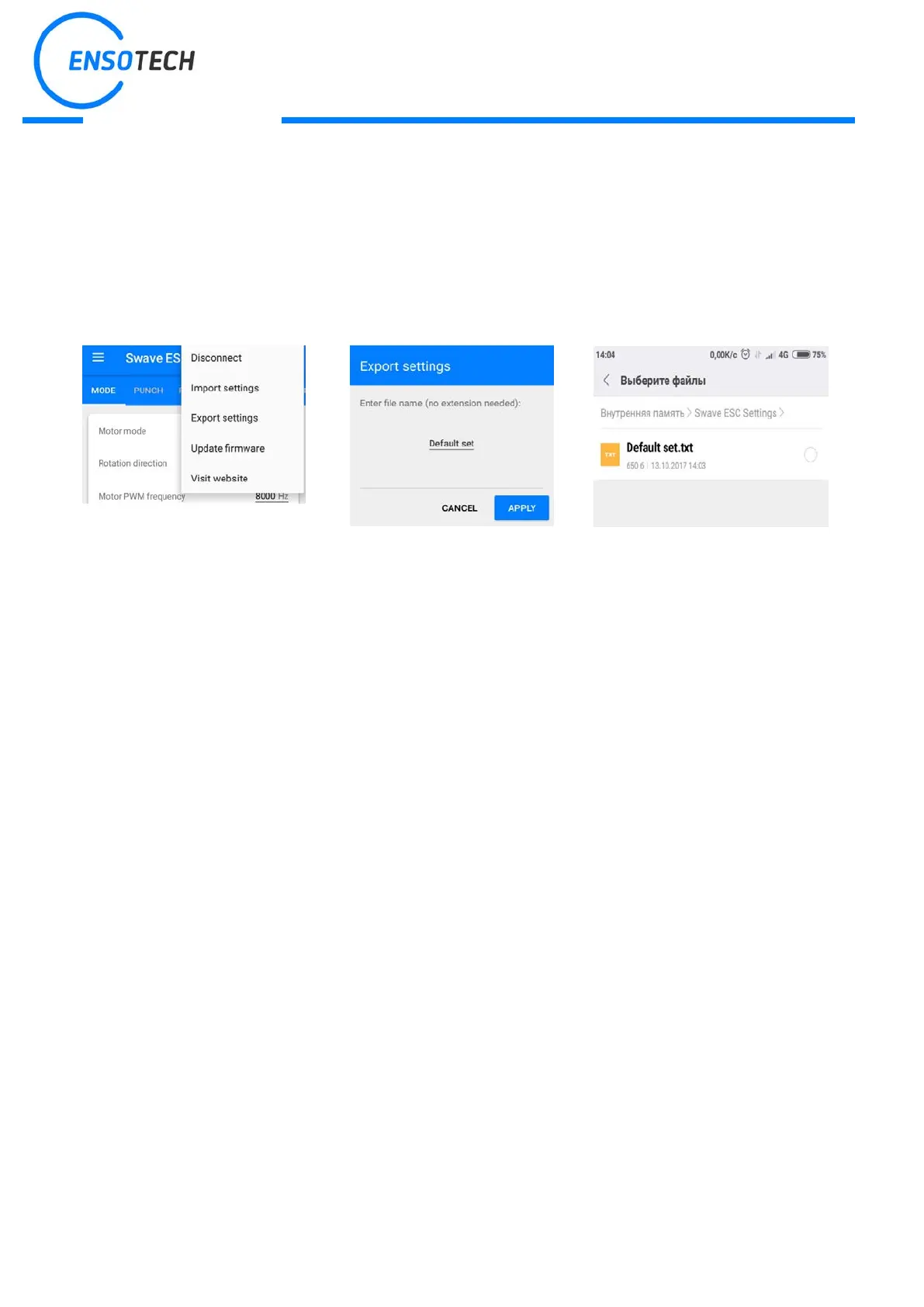 configuration in the root directory of the device internal memory will be created the folder “Swave ESC Settings”, all