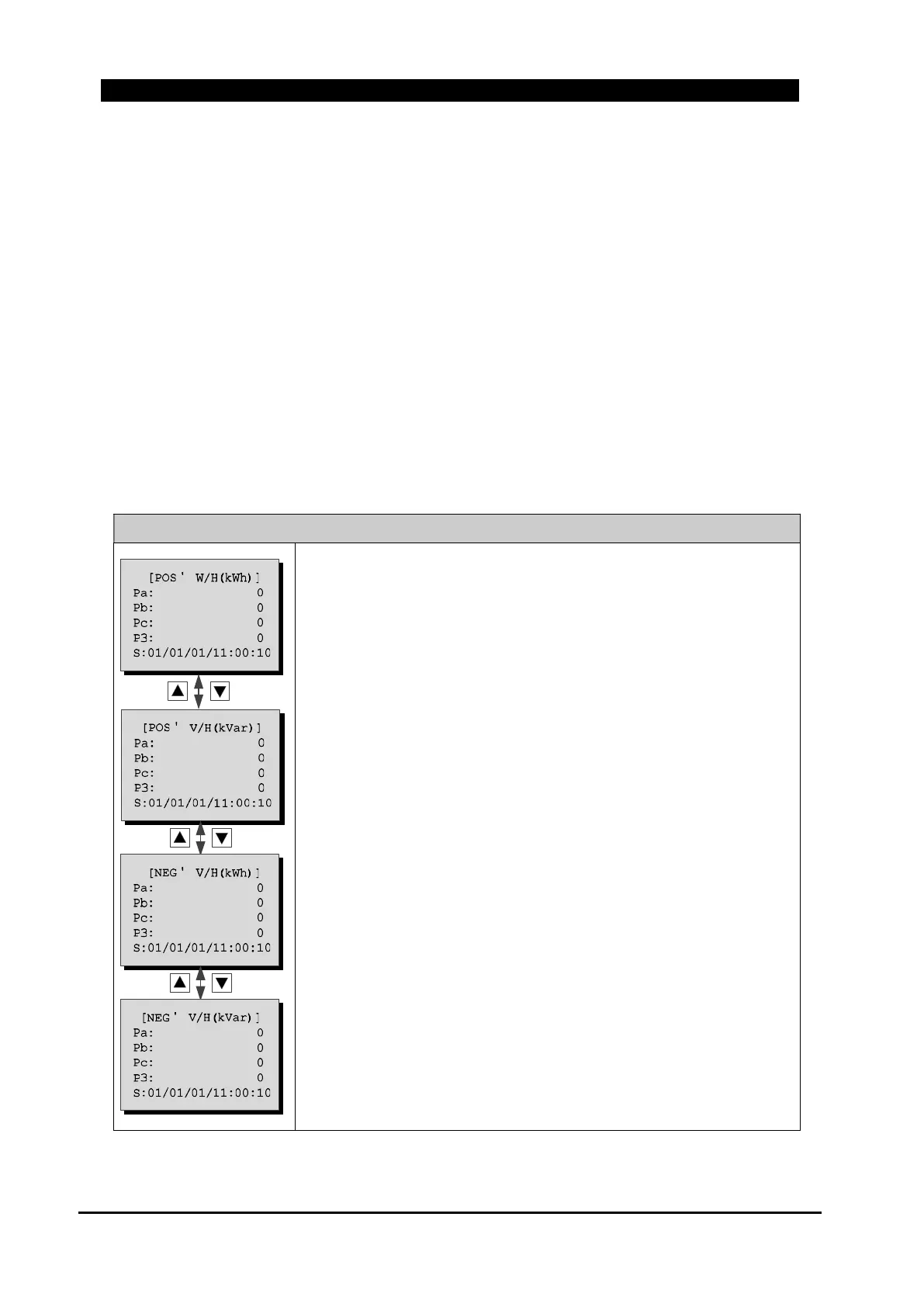 NEG’ W/H: Each phase and three phase active power amount of reverse direction are