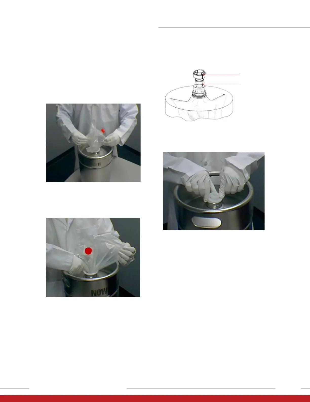 Figure 21. Placing the retainer around the fitment (200-liter canister shown).