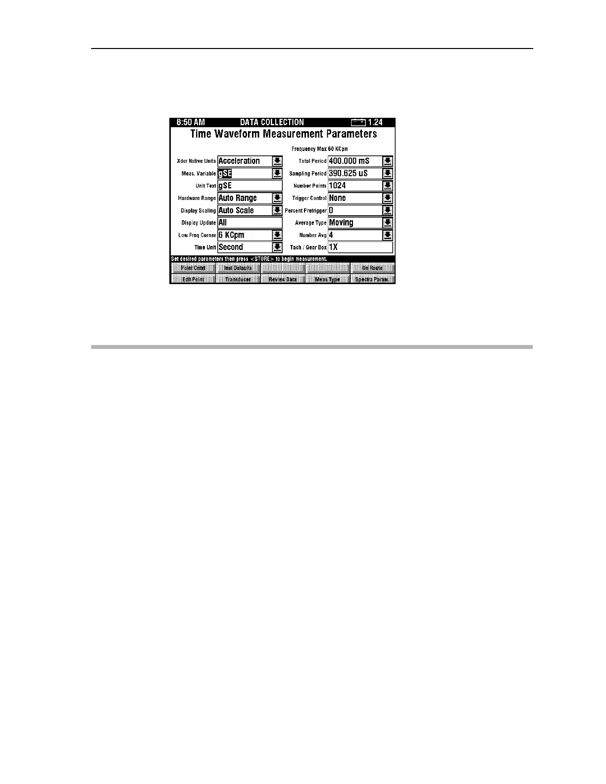 measurement parameters as shown in the Time Waveform Measurement Parameters menu.