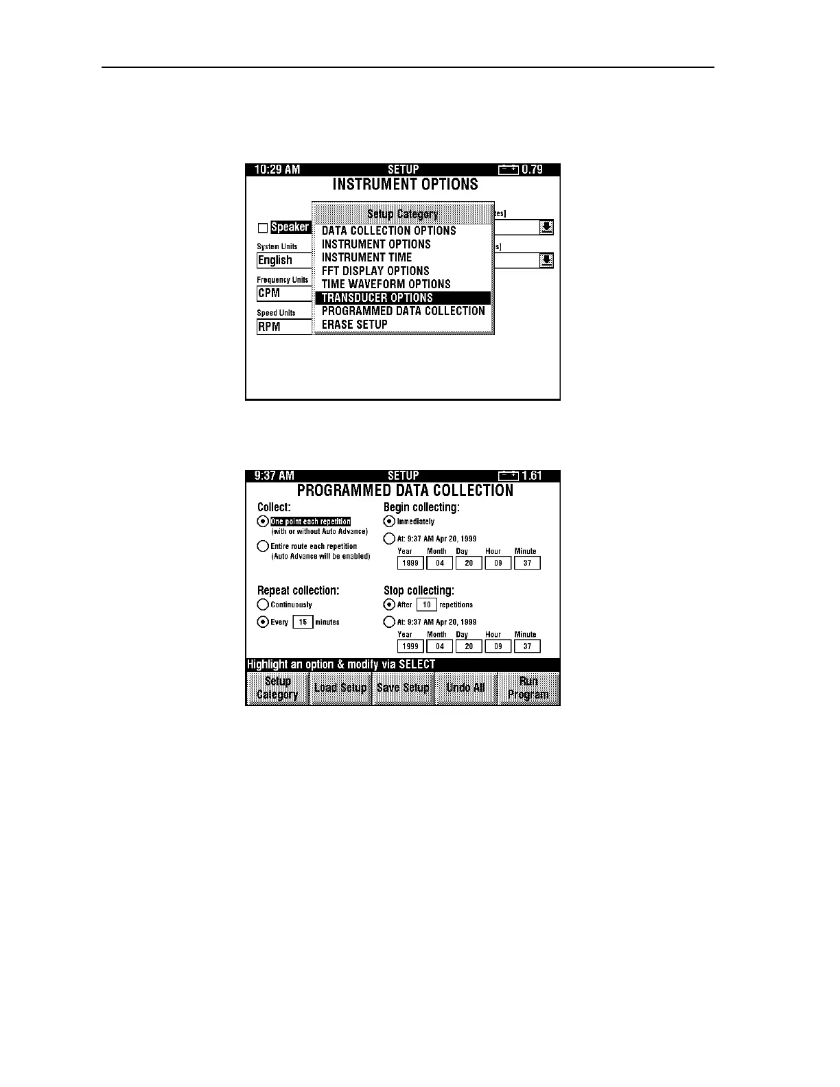 3. Use the arrow keys to select Programmed Data Collection and press <SELECT>. The
