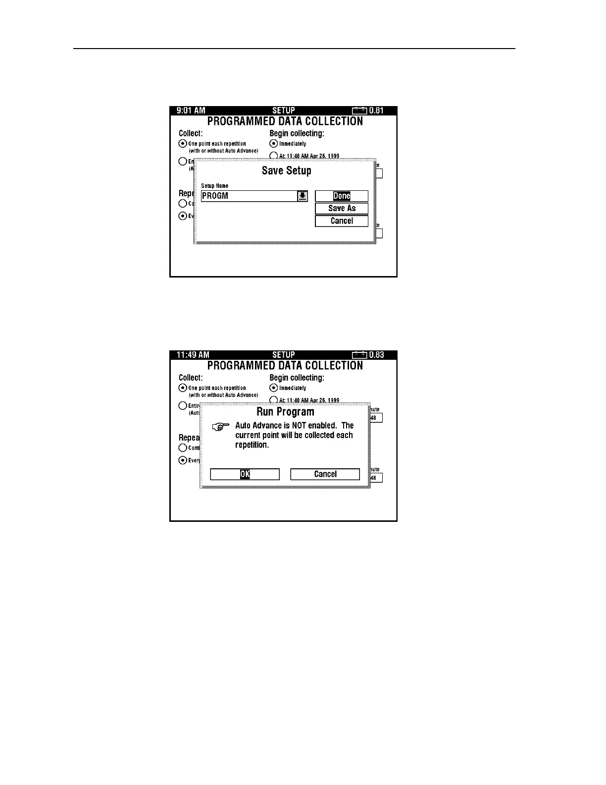 2. Press <SELECT> to save the setup. The following dialog box appears.