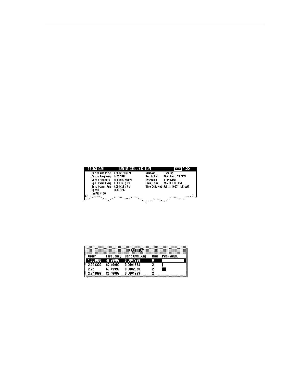defined by the position of the amplitude cursor. Pressing <F4> (Peaks) displays a list of the