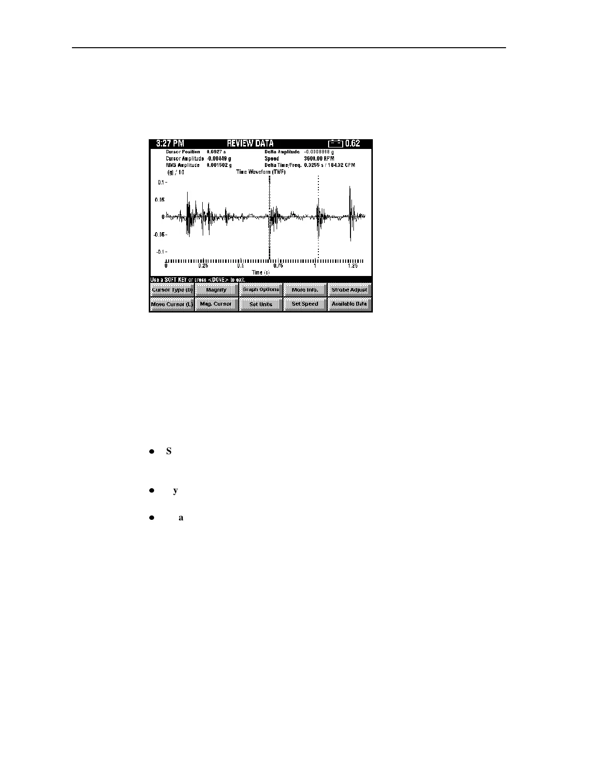 Time waveform displays are available only with the dataPAC 1500. Cursors are available to