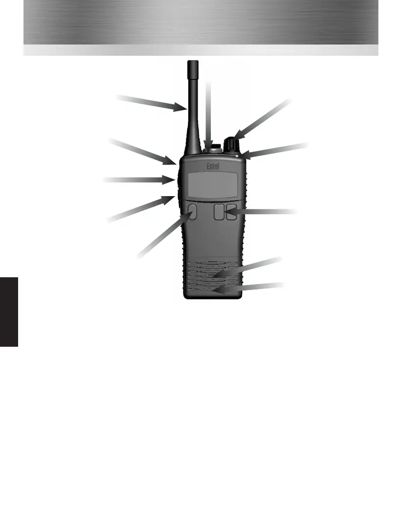 On / Off button. Press to turn radio on, press and hold to turn off.