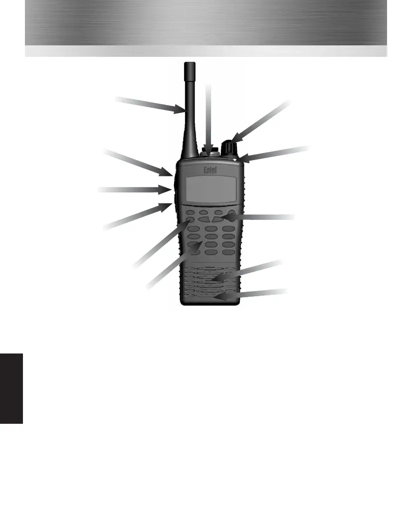 On / Off button. Press to turn radio on, press and hold to turn off.