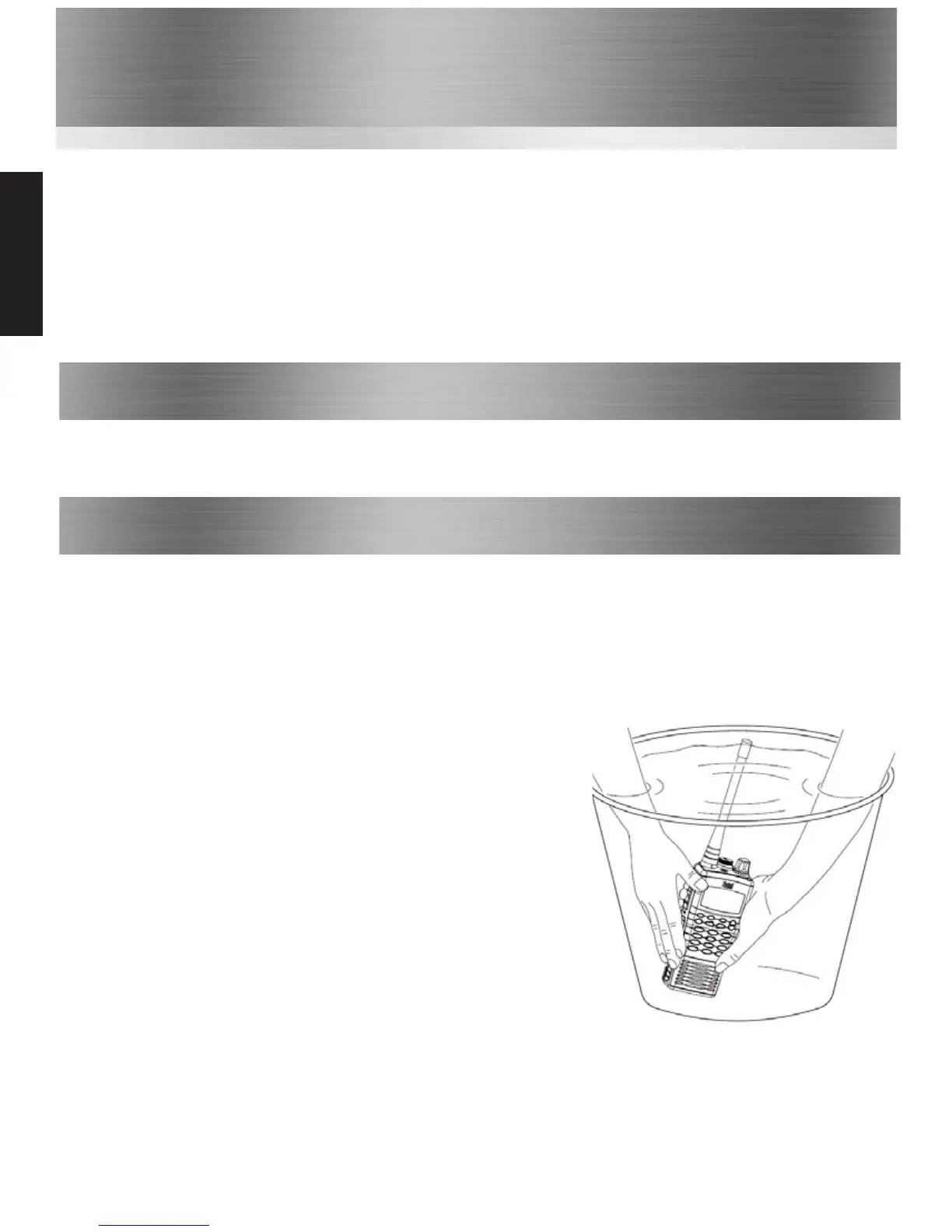 the transceiver in fresh water. If washing with the battery