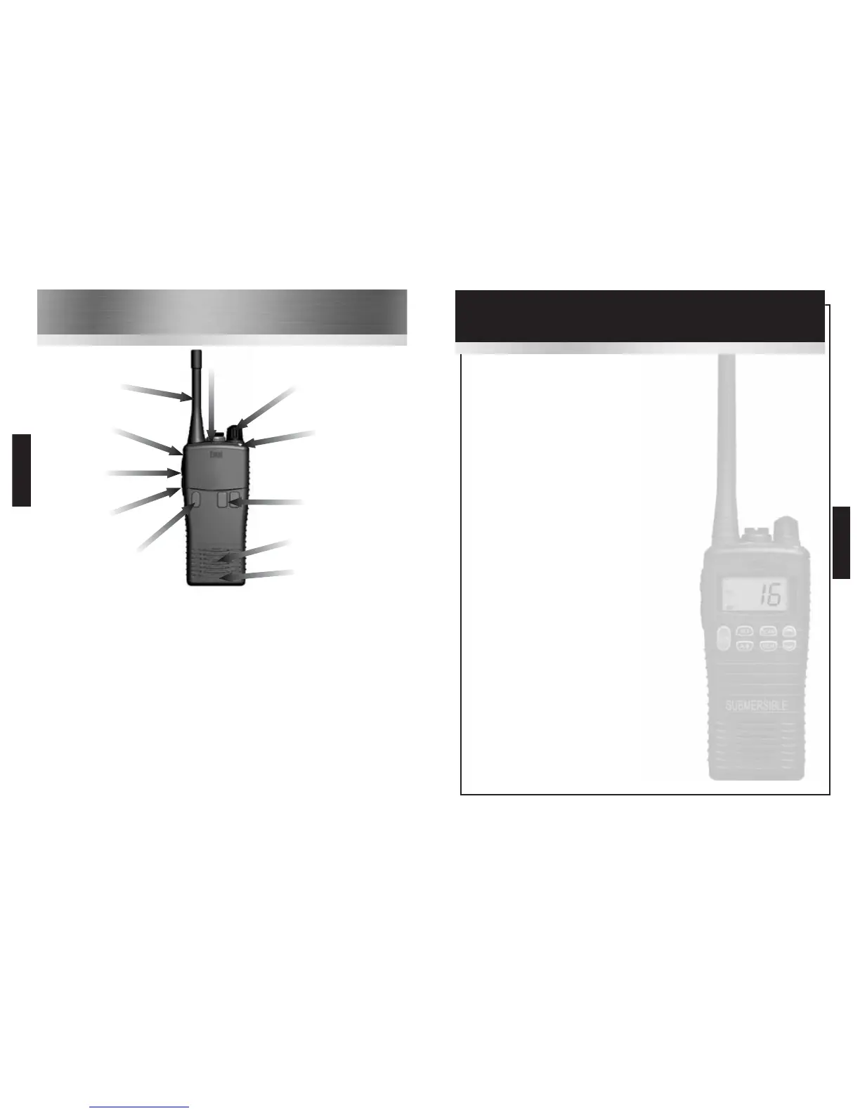 On / Off button. Press to turn radio on, press and hold to turn off.