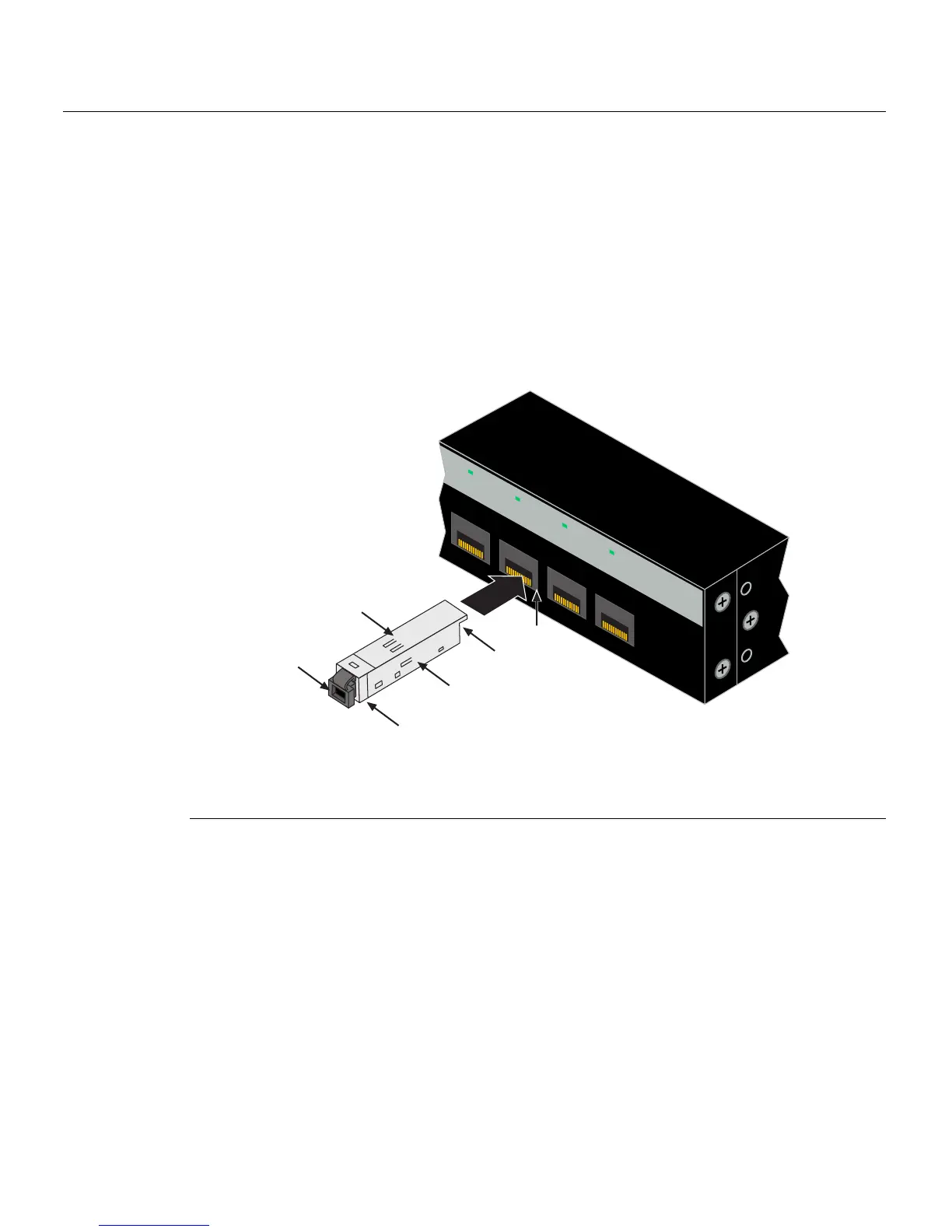 3. PushtheMini‐GBICintotheportslotuntiltheMini‐GBIC“clicks”andlocksinto