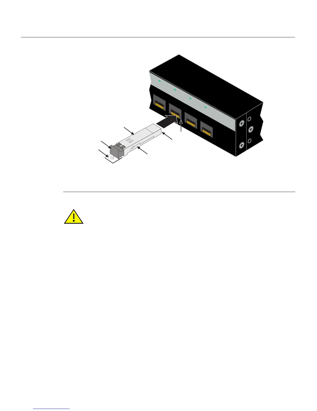 located under the front bottom end of the Mini-GBIC. This can damage the Mini-GBIC.