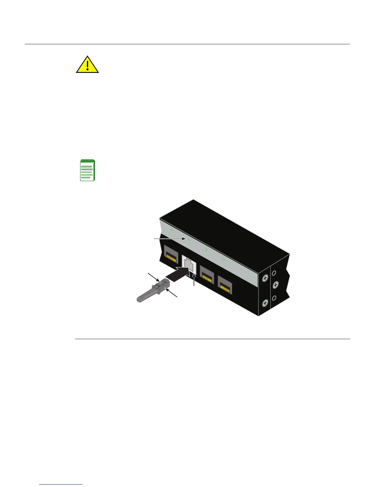 Note: To remove the MT-RJ cable connector, press on its release tab and pull out the